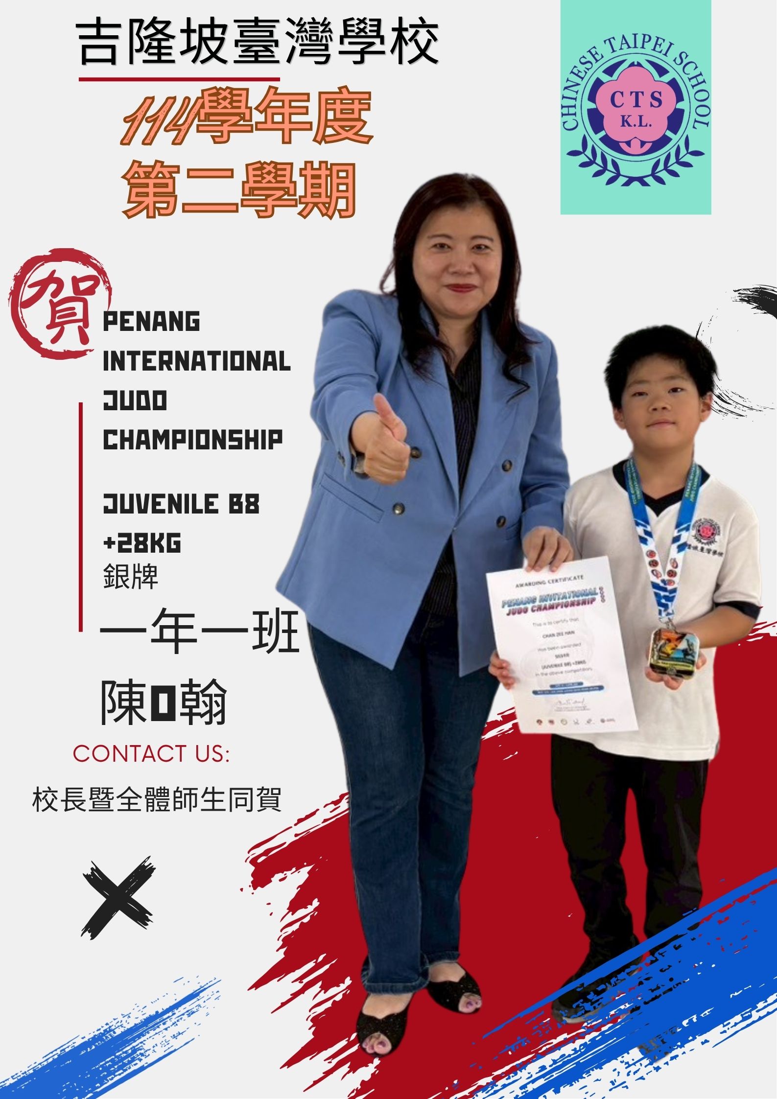 / Penang International Judo Championship Juvenile B8 +28KG 銀牌 一年一班 陳O翰