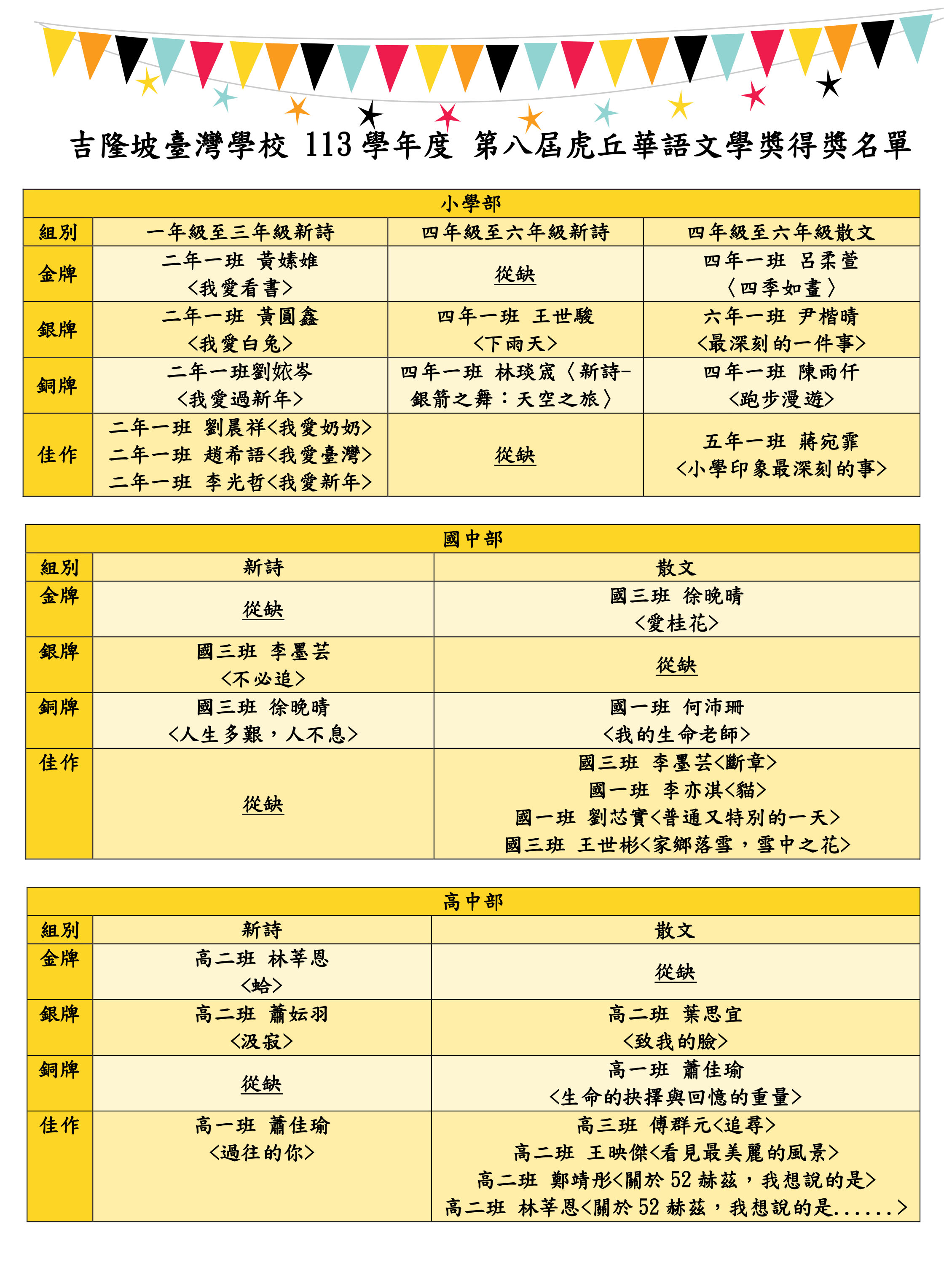 / 113學年度虎丘文學獎學校網頁得獎名單公告(英、馬)