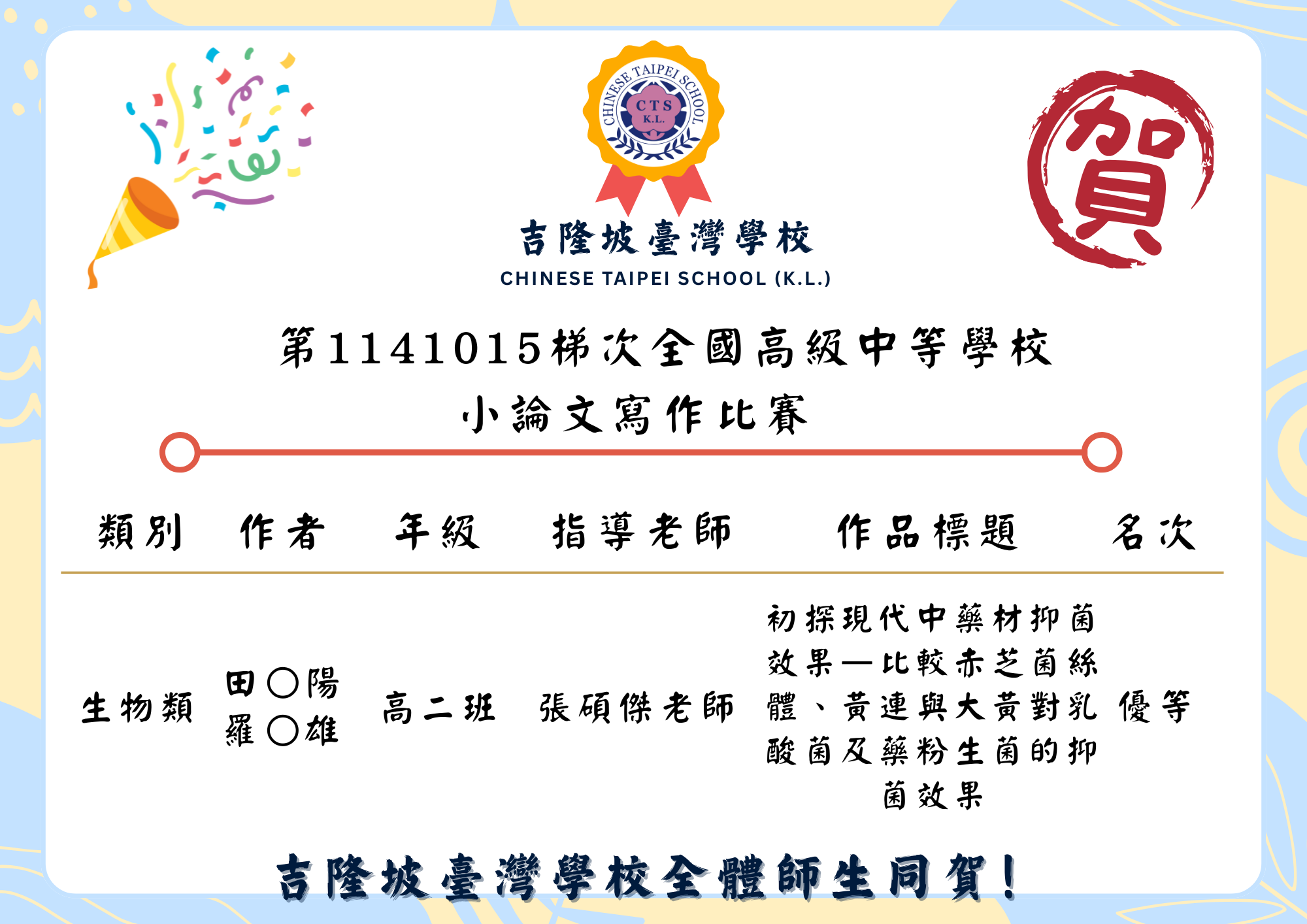 / 第1141015梯次全國高級中小學論文寫作比賽成績揭曉